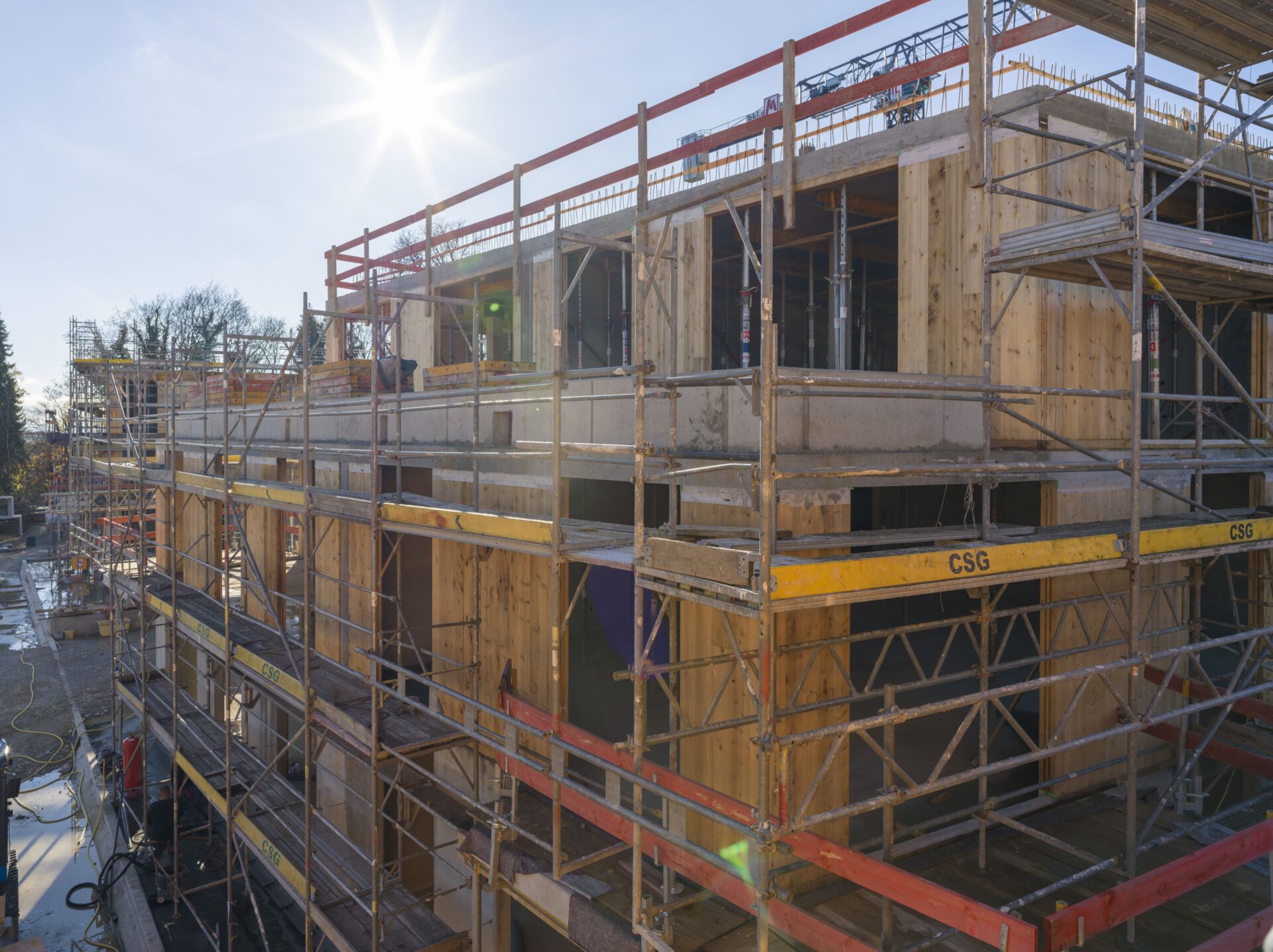 Die Holzhybridbauweise ist eine zukunftsweisende, nachhaltigere und energieeffizientere Alternative zum klassischen Massivbau. Dabei wird Holz in Kombination mit Baustoffen wie Beton oder Stahl verwendet. Als nachwachsender Rohstoff leistet Holz einen positiven Beitrag zur CO₂-Bilanz der Gebäude. Gleichzeitig führt der reduzierte Einsatz von Beton und Stahl zu einer deutlichen Verringerung des ökologischen Fußabdrucks. Indem die spezifischen Eigenschaften verschiedener Baustoffe optimal vereint werden, erzielt die Bauweise einen hohen funktionalen und nachhaltigen Mehrwert.