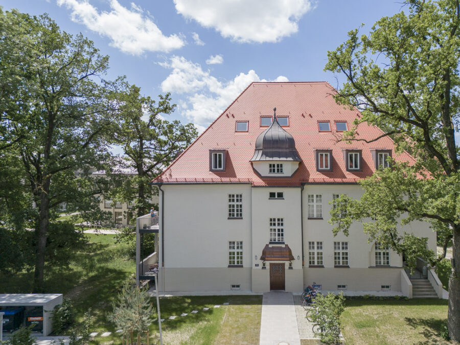 Das Ensemble der in Pavillonbauweise errichteten ehemaligen Klinikgebäude bietet heute hochwertigen Wohnraum mit offenen Parklandschaften und gemeinschaftlich nutzbaren Bereichen, die an die Geschichte des Ortes erinnern.